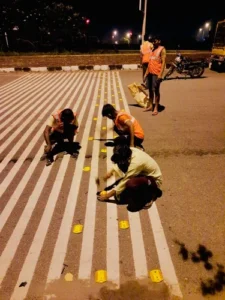 We provide supply and installation of road studs to improve lane visibility and enhance road safety, especially at night or in low-visibility conditions. Road studs act as reflective markers, guiding drivers and helping prevent accidents on highways, urban roads, and accident-prone areas.